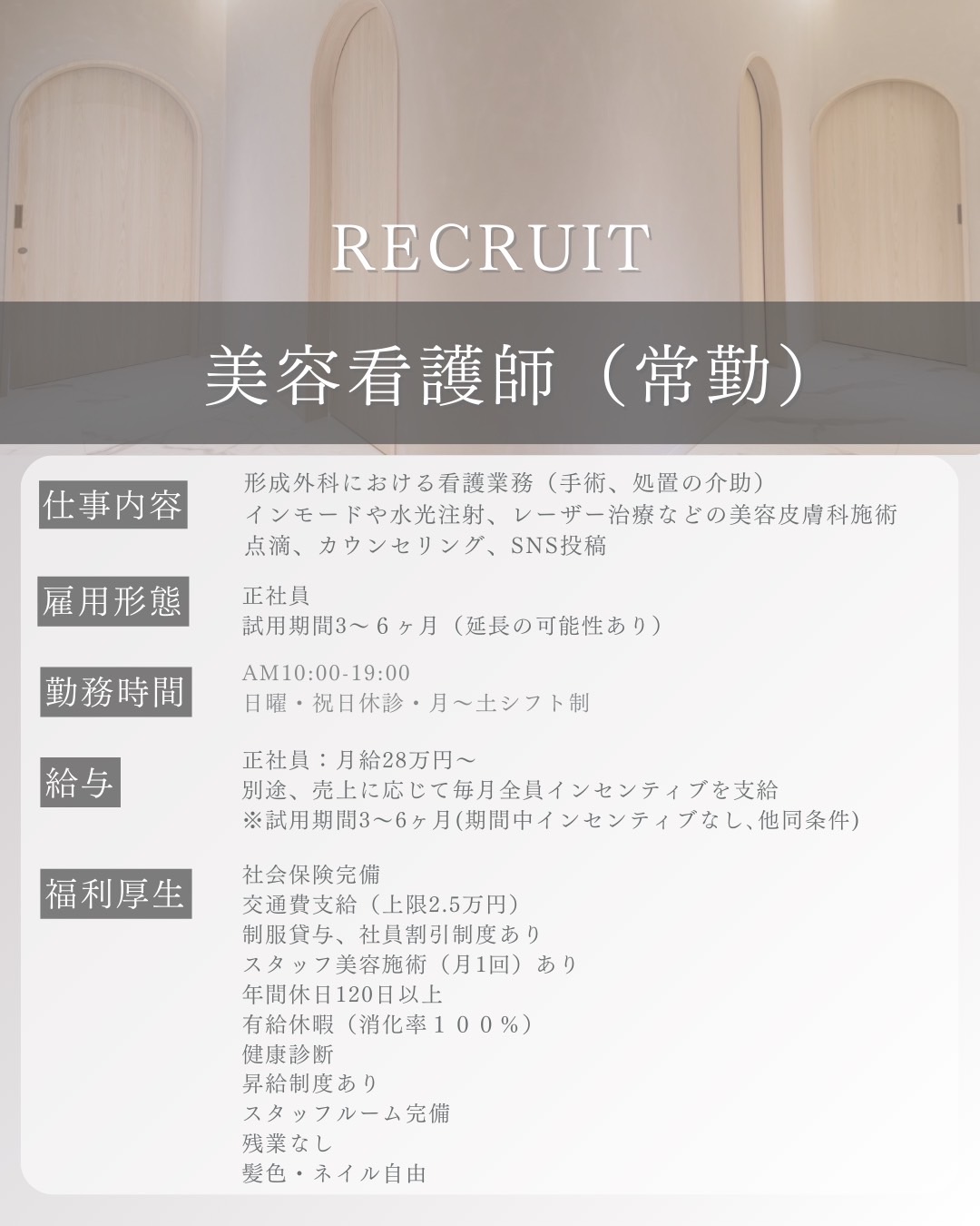 なんばにしわき形成・美容クリニックでは、現在一緒に笑顔で働いてくれる看護師を募集しております。